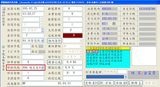掛號操作:受災民眾持健保卡就醫時請用IC卡掛號;若無健保卡請用異常掛號(C001無卡例外就醫),部份代號請選『009規定免部分負擔』,再按下『存檔』即可。