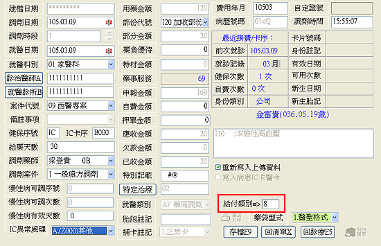 註:「給付類別」欄位:南台震災就醫民眾填報代碼為『8』,另『Y』為(八仙樂園粉塵爆炸事件)就醫民眾填報代碼;『Z』為(高雄市氣爆事件)就醫民眾填報代碼。