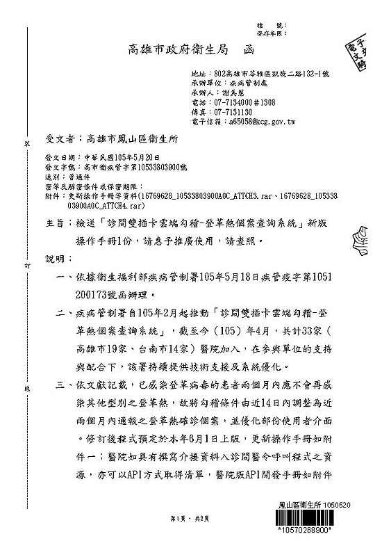 公文診間雙插卡雲端勾稽-登革熱個案查詢系統