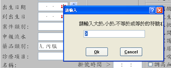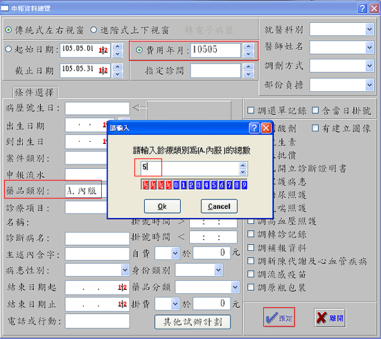 出現「請輸入診療類別為[A.內服]的總數」視窗,請填入院所想調閱的品項數,再按下「Ok」