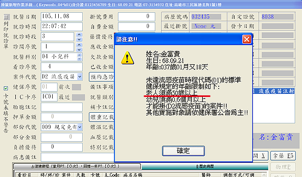 年齡50歲以上對象可直接掛入;若年齡未滿50歲以上對象掛入時,即出現如下圖提醒視窗