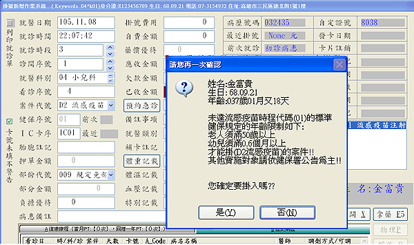 『A015 D2老人流感未滿65歲是否提示』 將右方設定值欄改為『Y』