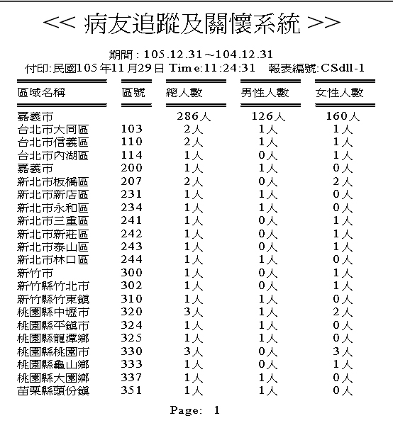 可以指定要調閱分析的行政區域,請輸入郵遞區號,如輸入「100」表示臺北市中正區,空白表示不分區