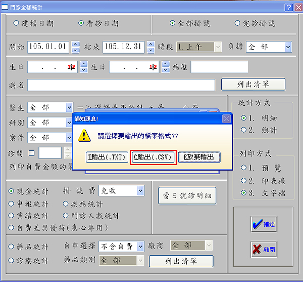 報表輸出完成後,記得將掛號費改回院所現行收費金額。
