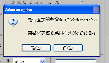 5. 出現詢問『是否直接開啟檔案?(C:ScRepost.Csv)』,請按『否』