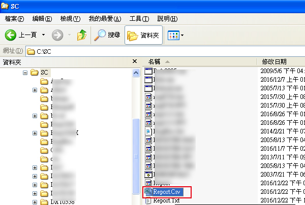 檔案預設儲存位置於SC資料夾底下(檔名Repost.Csv)