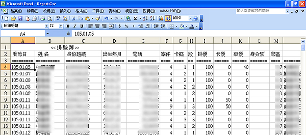 轉出的(.CSV)檔可直接用EXCEL開啟編輯資料,刪除不必要欄位或修正身分類別等文字內容,