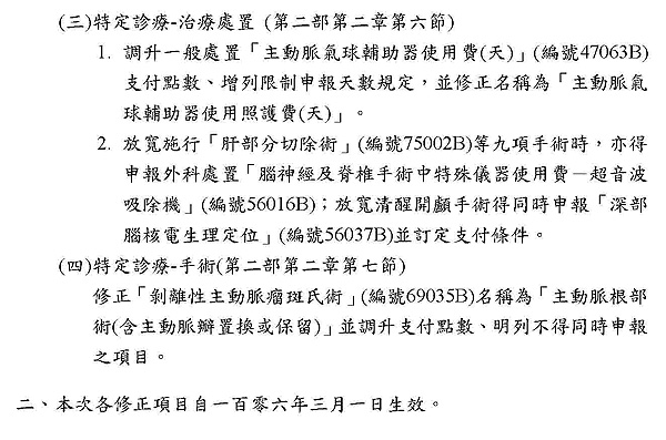 主旨:有關衛生福利部106年2月23日以衛部保字第1061260080號令,發布修正「全民健康保險醫療服務給付項目及支付標準」部分診療項目,並自中華民國一百零六年三月一日生效,請查照。