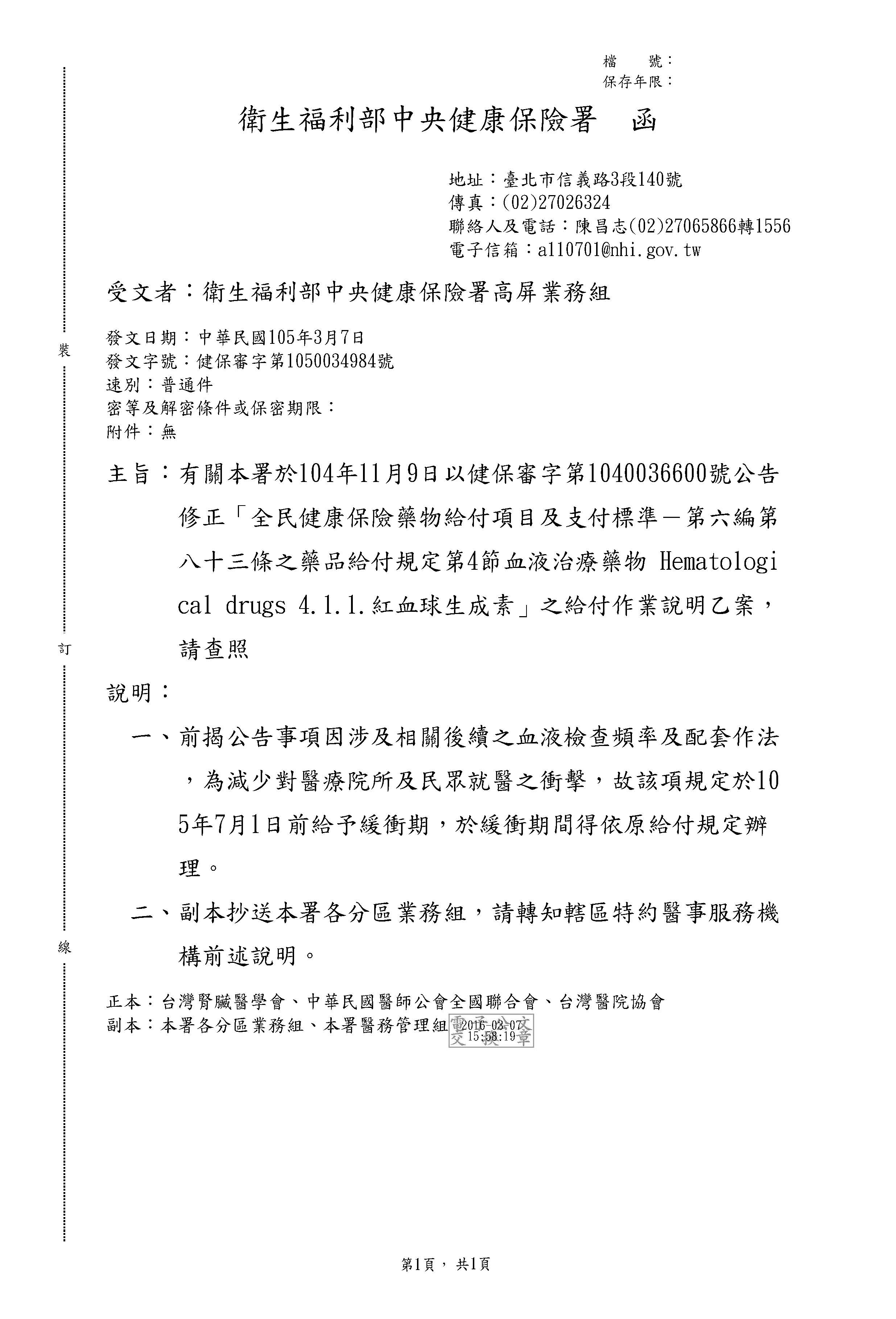 分類:健保署 日期:2016-03-15
