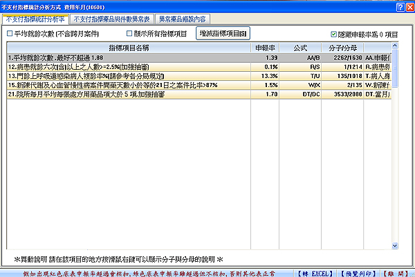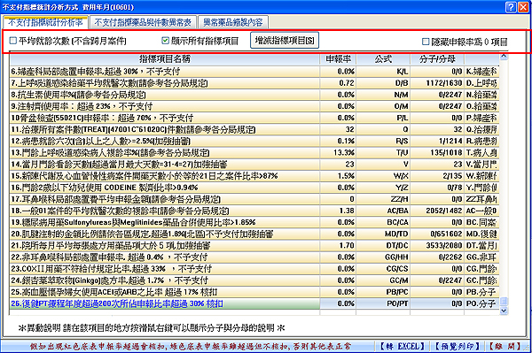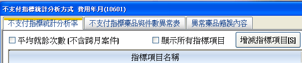【醫聖門診系統不支付指標統計分析率頁籤下列表指標項目共26項會全部顯示出來。】