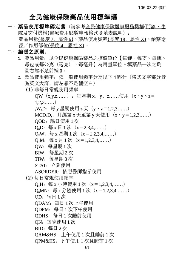 修正「全民健康保險藥品使用標準碼」並自費用年月106年4月起實施