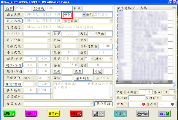 於『4藥品資料』用滑鼠左鍵按一下「管制」