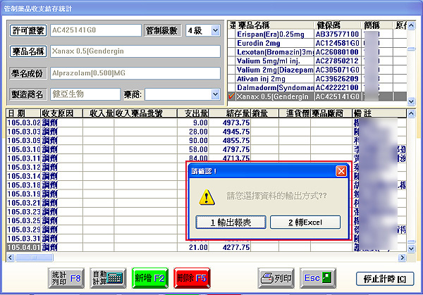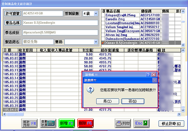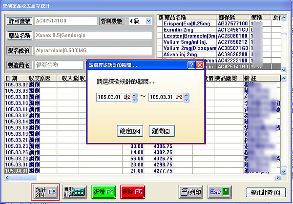 於右方點選要查閱的藥品項目,於下方點選「統計列印」,並輸入要統計的期間,