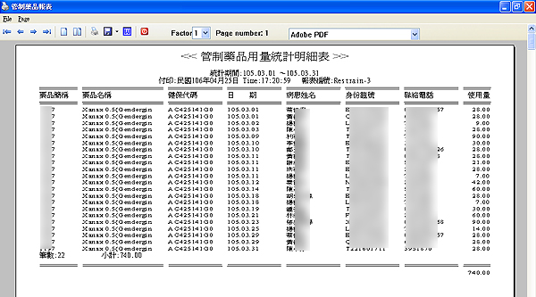 如何列印某顆管制藥品於某段期間處方使用對象名單及用量明細供稽核員查閱