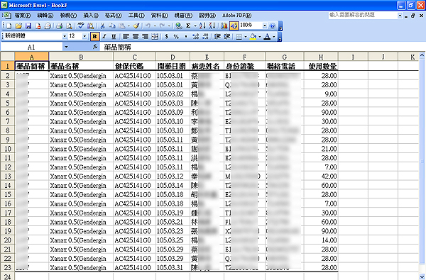 ●按下【轉Excel】可輸出電子檔,進行資料編輯整理。範例圖示如下