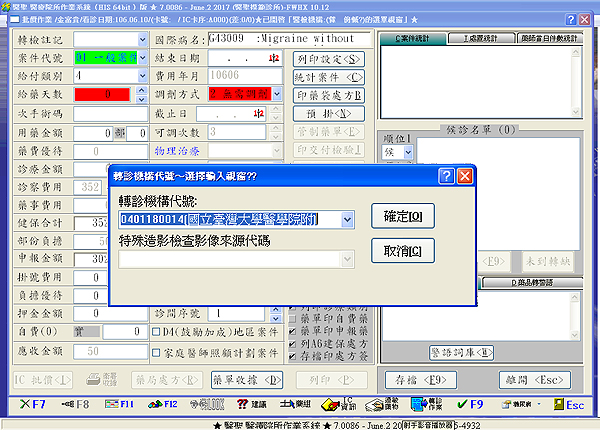 於上圖「代碼資料庫」鍵好之檢驗或轉診機構代碼,會變成下拉式選單可供醫師直接點選。