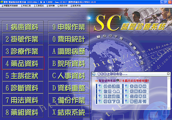 2. 直接由醫聖系統主畫面『4藥品資料』進入新增藥品