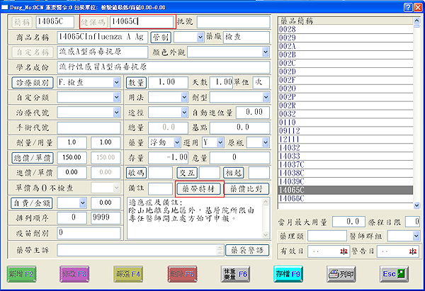 『簡稱』輸入自定簡稱,於『健保碼』欄內輸入「14065C」按下鍵盤『Enter』會自動帶出相關資料,按下『存檔』即完成。