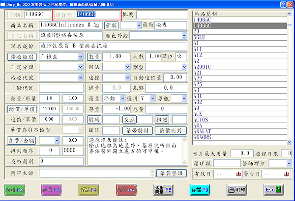 『簡稱』輸入自定簡稱,於『健保碼』欄內輸入「14066C」按下鍵盤『Enter』會自動帶出相關資料,按下『存檔』即完成。