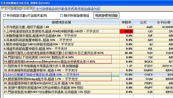 申報作業『不支付指標統計分析率』指標23.COXII用藥不符給付規定比率超標時(如下圖),