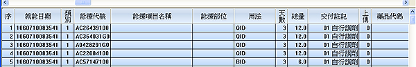 每日上傳畫面下方醫令區以綠色呈現,如上圖,
