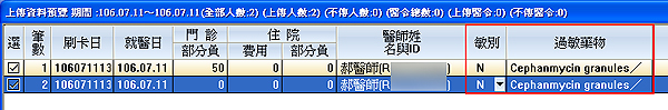 該筆過敏藥物記錄會出現在每日上傳畫面最右方,於執行每日上傳作業時一併上傳。