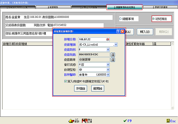 註:若處置內容有輸入疫苗針劑資料,可按『轉入』直接帶入。