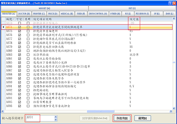 將『A074 掛號清單滑鼠右鍵是否開啟彈跳選單』右方設定值改為「Y」