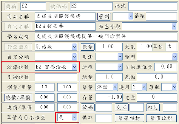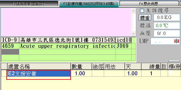 3. 於支援照護機構院民當次看診病歷處方內多鍵入一筆E2