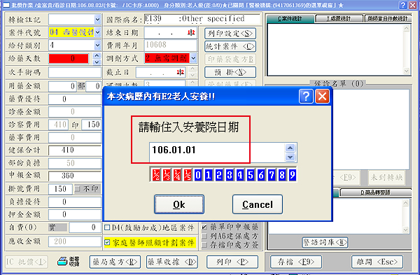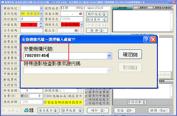 4. 於批價畫面存檔時,請輸入「安養機構代號」及「入住安養日期」【同病患僅首次看診需輸入】