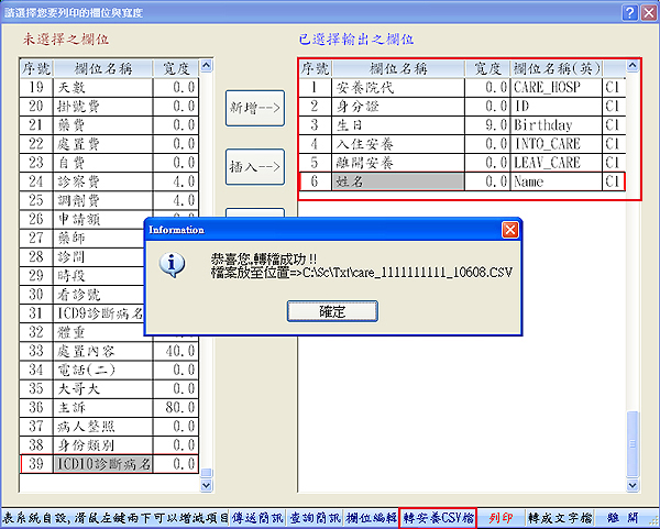 轉出檔案置放路徑:C:ScTxtcare_診所院代_費用年月.CSV
