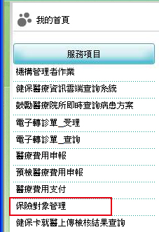步驟二、登入成功後,左側服務項目點選「保險對象管理」