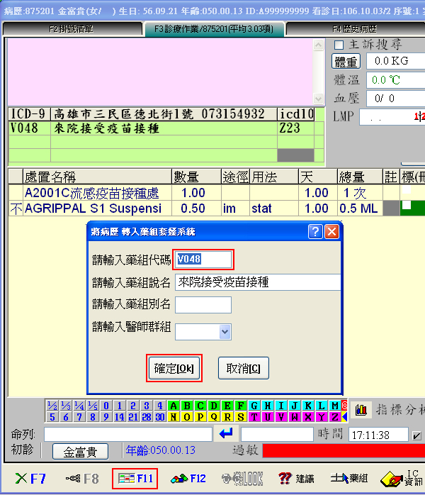 1)將要一鍵帶入的處方內容建立完成,再按下「F11」存成藥組