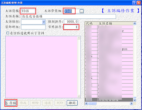 4)設定完成右方主訴資料區即出現該項目,當之後掛入D2案件時,於看診畫面如下圖紅框處,