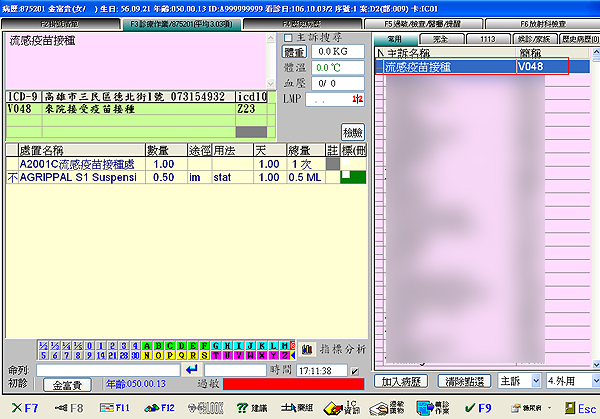 雙擊滑鼠左鍵(或快擊ENTER鍵兩次)即可自動帶入流感疫苗申報所需資料