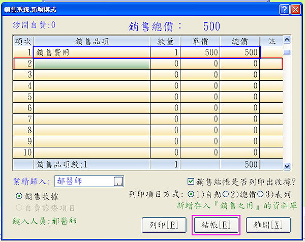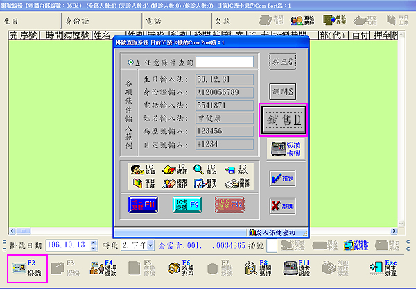 1. 滑鼠按『F2掛號』、再按下『銷售』