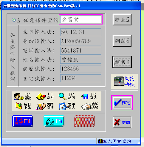 如姓名或生日或病歷號或電話…等,再按下『確定』