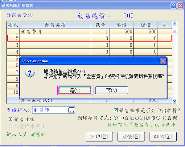 4. 系統即自動印出銷售收據(有銷售對象姓名)