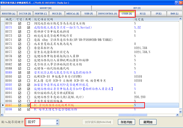 「H197 IC 資訊與預讀功能啟用新版」將右方設定值改為『N』