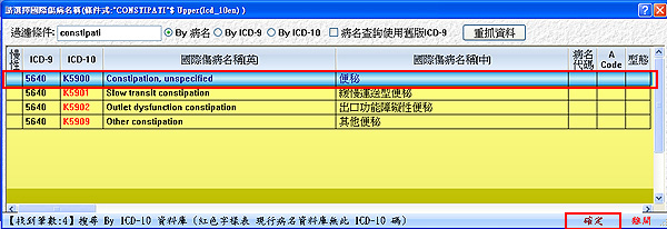 選擇符合的病名列後按下「確定」即可。