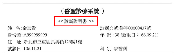診斷證明書的抬頭名稱可否視病患需求提供列印選擇為病歷摘要或就醫證明項目