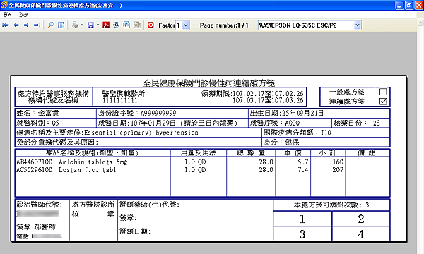 更版功能適用:六等份報表紙+連處開立藥品5項以下