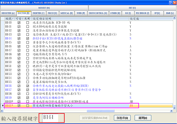 2、於畫面左下方「輸入搜尋關鍵字」欄內輸入參數編號『B161』按下ENTER鍵跳至該編號列上