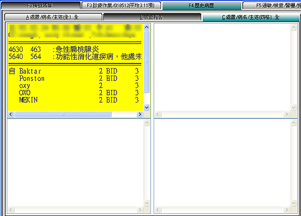 ●『F4 歷史病歷』處置/病名/主述(四格)畫面內容文字大小(18)設定完成如下範例圖示: