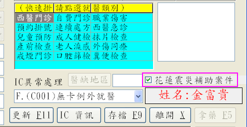 為避免掛號操作不慎誤報為花蓮震災補助案件,於9申報作業>第4項C檢查錯誤加強用戶提醒確認作業