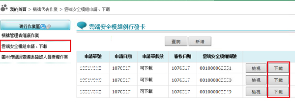 ※ 申請後最久約2小時,就可以下載雲端安全模組檔。