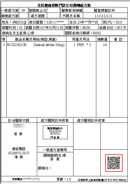 標準交付處方箋(A4格式)如何列印附加二維條碼(QR-CODE)資料