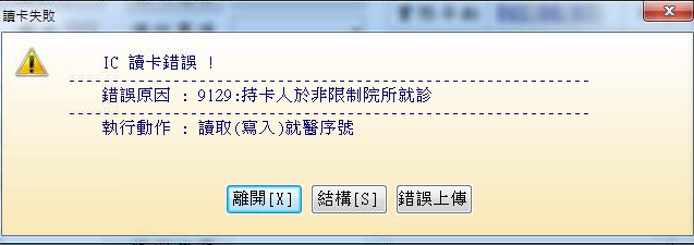 IC卡掛號時出現「9129:持卡人於非限制院所就診」該如何處理