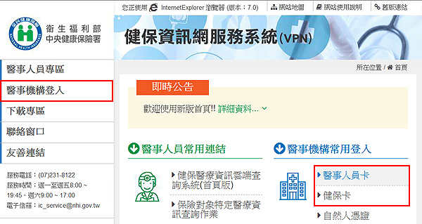 步驟一、登入健保資訊網服務系統(VPN), 網址為https://medvpn.nhi.gov.tw/