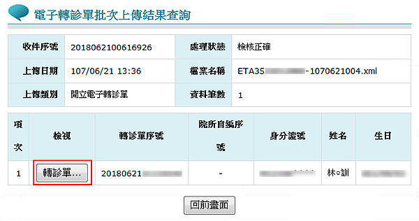 若檢核結果有錯誤,需於轉診作業內修正錯誤內容後再重新上傳檢核,健保端檢核正確才算成功。